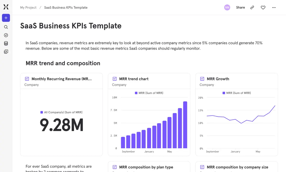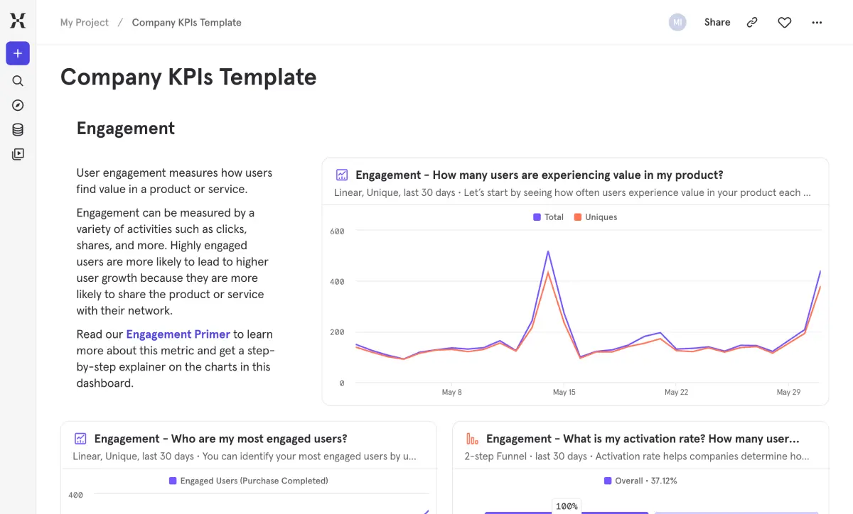 Templates are pre-built dashboards designed around a specific use case or industry. Instead of starting from a blank canvas, you start with a proven framework built on industry best practices that you can adapt to your needs.