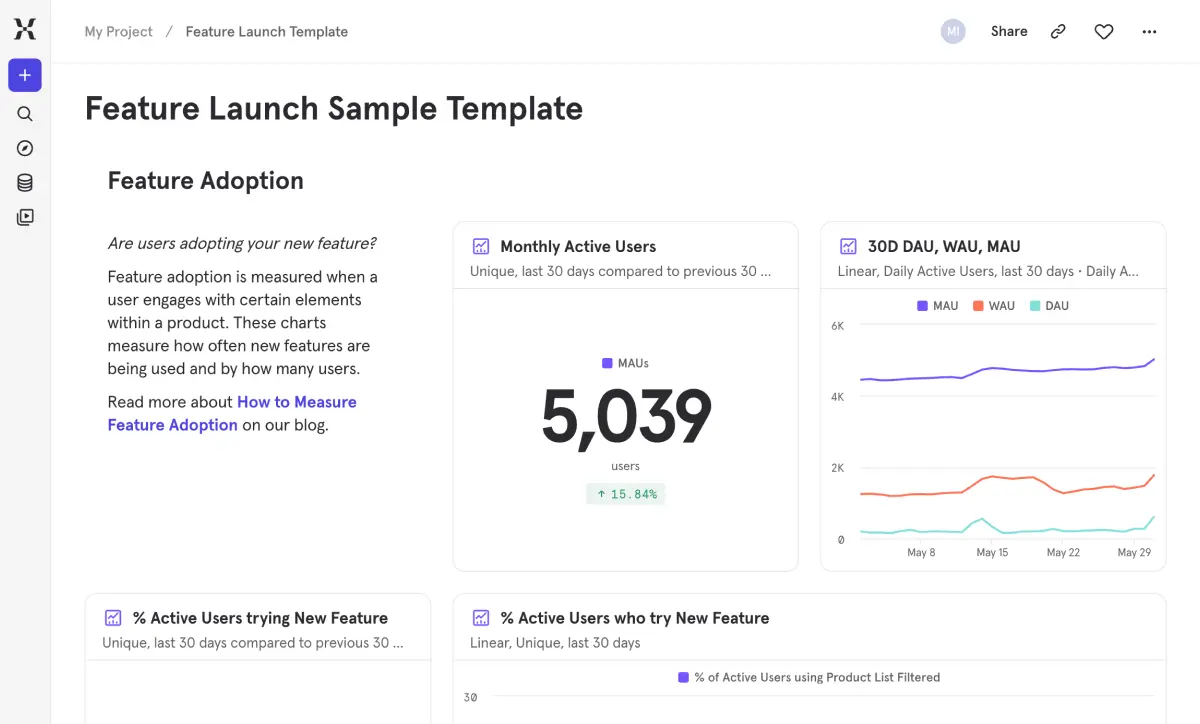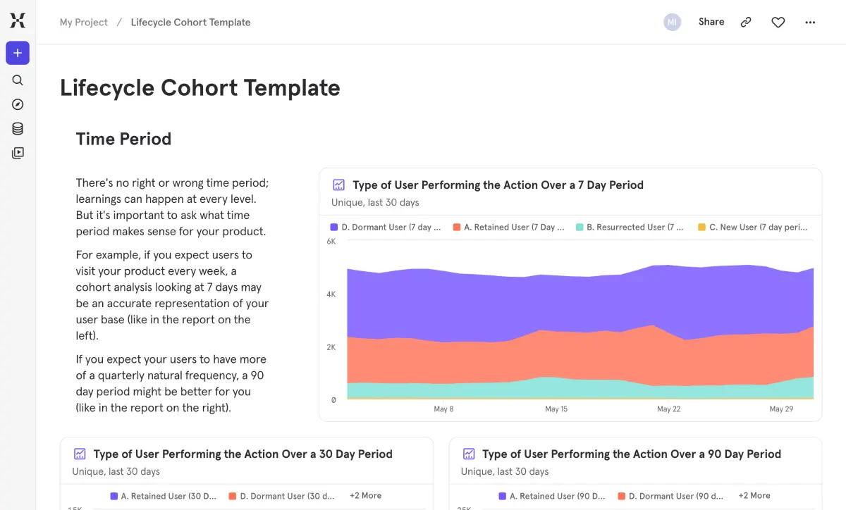 The tiles above are interactive previews designed for exploration. To use a template with your own data, navigate to your Mixpanel project and choose one of two paths:
